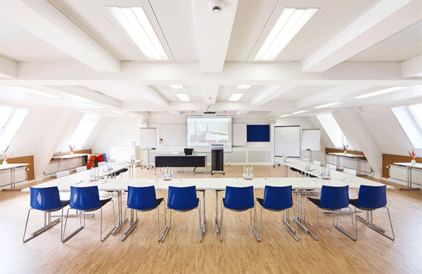 Im Konferenzsaal 2 im 3. Stock unseres Hauses können Seminare bis zu 120 Personen mit Konzertbestuhlung durchgeführt werden. Auf dem gleichen Stockwerk befinden sich zusätzliche Gruppenräume, die gegen Aufpreis dazu gemietet werden können.