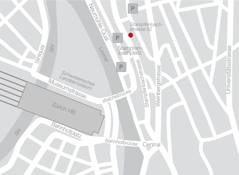 Unser Seminarraum und unsere Sitzungszimmer liegen im Zentrum von Zürich und befinden sich sechs Gehminuten bzw. eine Tramhaltestelle (Stampfenbachplatz) vom Hauptbahnhof (Tram 11 und 14, Bus 46) und zehn Autominuten vom Flughafen Zürich entfernt.